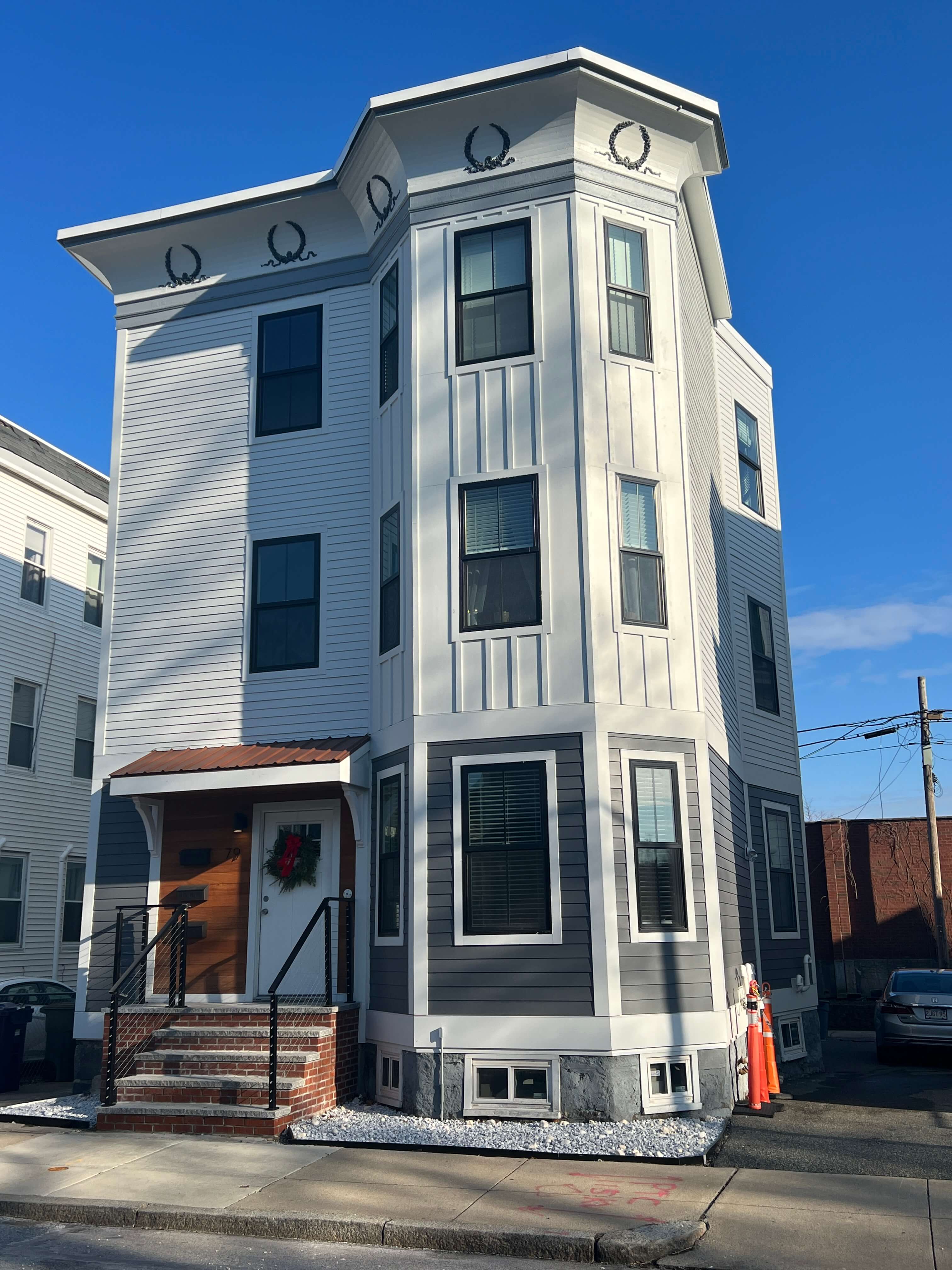 Exterior façade restoration include IPE hardwood plank, interior office, retail and residential renovation of 2 units.
